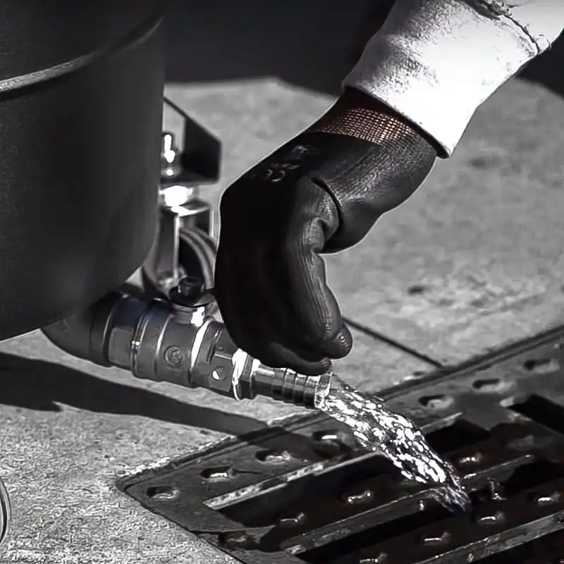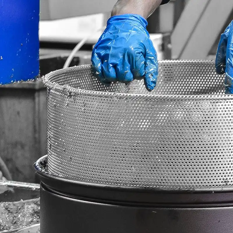El líquido recogido pasa a través de un filtro PPL con una eficacia de 150µ, que permite separar incluso las partículas sólidas más pequeñas. Este proceso garantiza que el líquido filtrado sea apto para su reutilización. El filtro está diseñado para poder lavarse y reutilizarse fácilmente. Además, existe un filtro TNT desechable alternativo con una eficacia de 100µ que también está disponible.