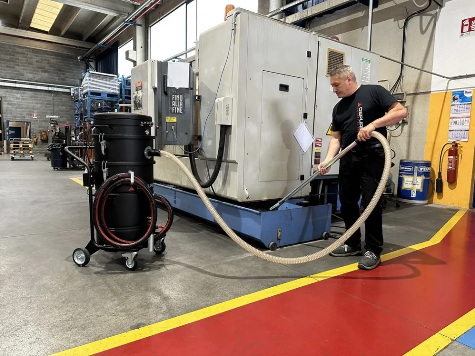 La aspiradora industrial M70 OIL está diseñada específicamente para la eliminación y separación de aceite y virutas metálicas de depósitos, mesas de máquinas herramienta y guías. Utiliza dos motores que funcionan en paralelo para garantizar una potente capacidad de aspiración. El recipiente de la aspiradora está equipado con una cesta metálica que separa eficazmente las partículas sólidas del componente líquido. Además, incorpora un filtro de nailon de 150 micras para mejorar el proceso de filtración.