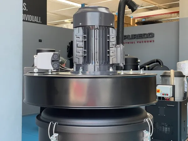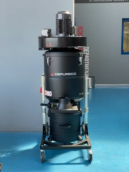 The DF 40 is a portable industrial vacuum designed for the removal of suspended dust or for connection to aluminum and PVC cutting machines. It features a three-phase fan that provides powerful suction. This industrial vacuum, part of Depureco’s dust collectors’ range, is equipped with a high-quality filter that offers M Class filtration efficiency down to 1 micron. As a standard feature, the DF 40 incorporates a highly effective manual filter cleaning system. By utilizing a lever located outside the filter chamber, the operator can shake the filter, causing the dust to directly fall into the collection bin. Additionally, upon request, an automatic piston filter shaking system or a jet pulse filter cleaning system can be installed.