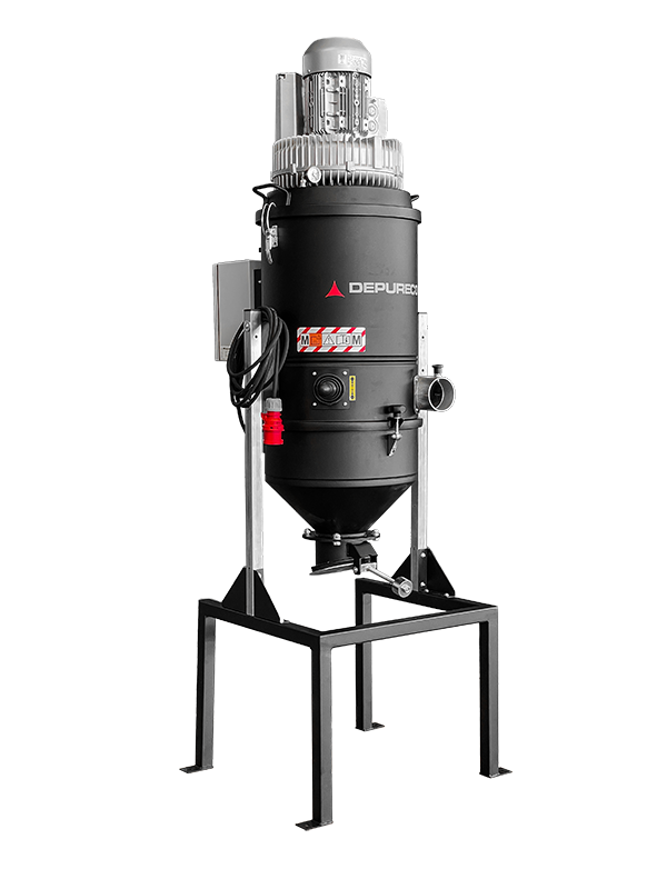 The HF300 is an optimal solution for effectively collecting trimmings, swarf, dust, and other solid materials in a fixed location. Its powerful side channel turbine, located on top of the vacuum, ensures exceptional performance even when connected to long pipe systems. The vacuum comes equipped with an M Class filter (with a filtration efficiency of 1 micron) and a convenient filter shaker as standard features. Additionally, depending on the specific application, alternative filters such as Teflon water-repellent filters, Nomex 250°C resistant filters, and filters treated with PTFE for binding and challenging dust are available. Upon request, the unit can be fitted with an H14 absolute filter. The collected material in the collection cone is automatically discharged when the vacuum is turned off, thanks to a weighted vane located at the bottom. If needed, an electrical panel for remote control management, level sensor, and other automatic systems can also be installed.